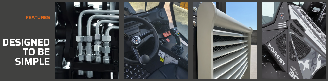The FOREST line models are equipped with a sturdy, high-strength steel grid fixed on the rear part of the frame to protect the radiator. The grid protects against impacts caused by contact with logs and branches. The system was designed to facilitate the ventilation required to cool the radiator.