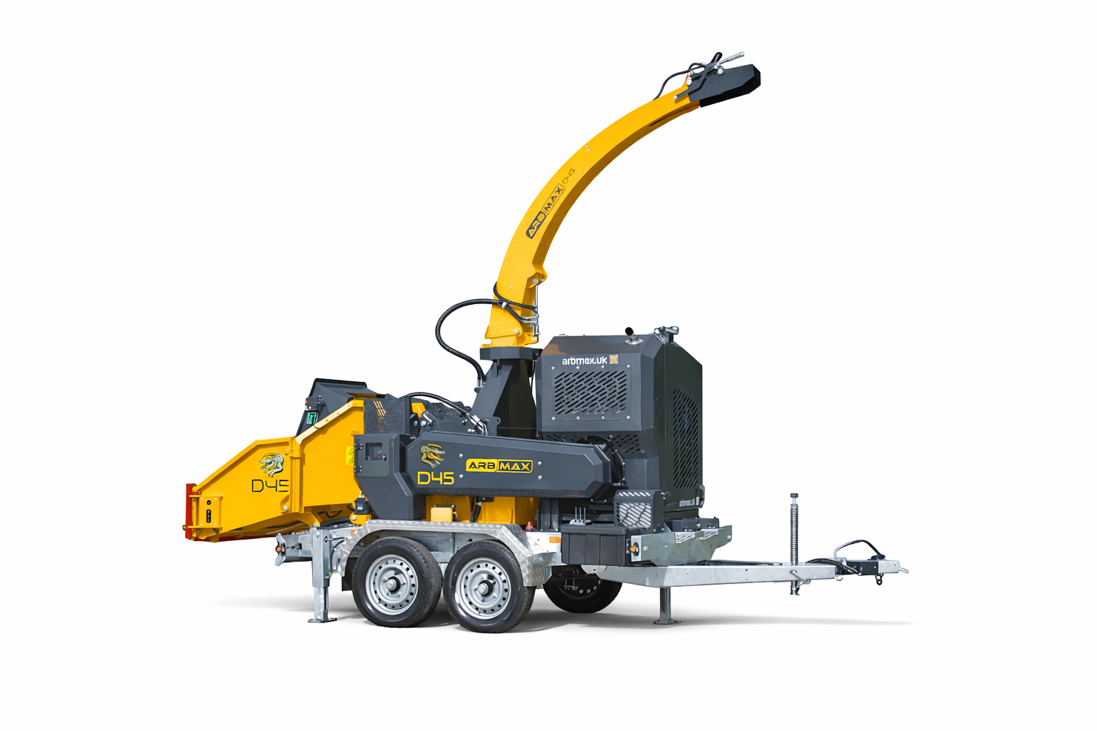 18″ Drum Wood Chipper — big chipper capacity in a road-towable chassis. Offering the largest capacity wood chipper under 3.5 tonnes, the ARBMAX D45 opens new possibilities for wood chipping operations.