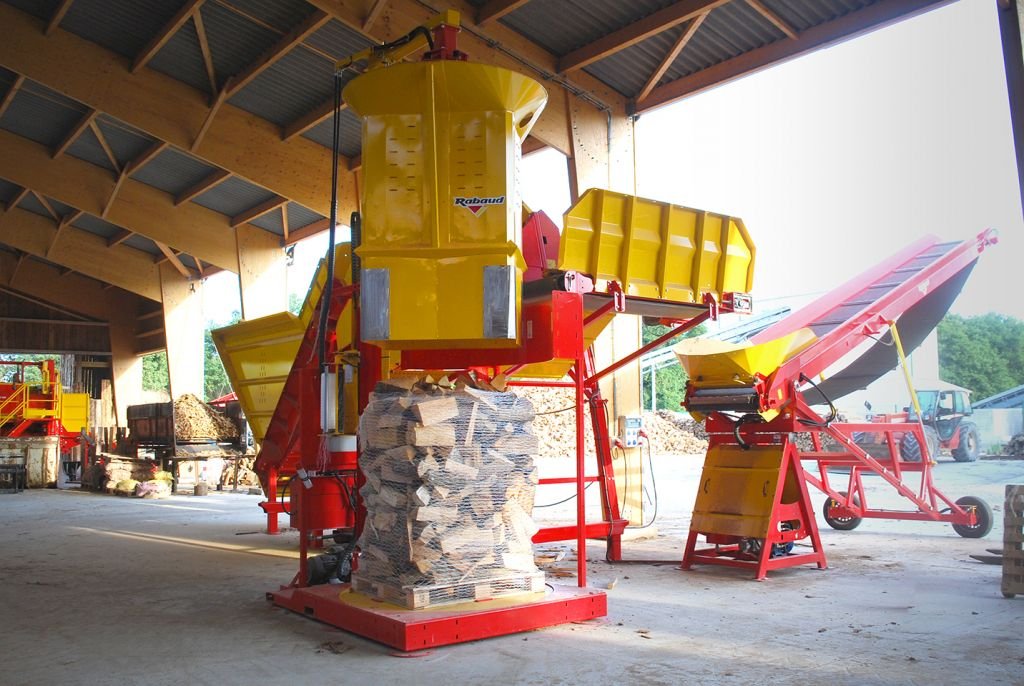 • Industrial machine with vibrating system for a better positioning of the log to gain a steady shape for palletizing and for a better filling optimization – RABAUD Exclusivity.