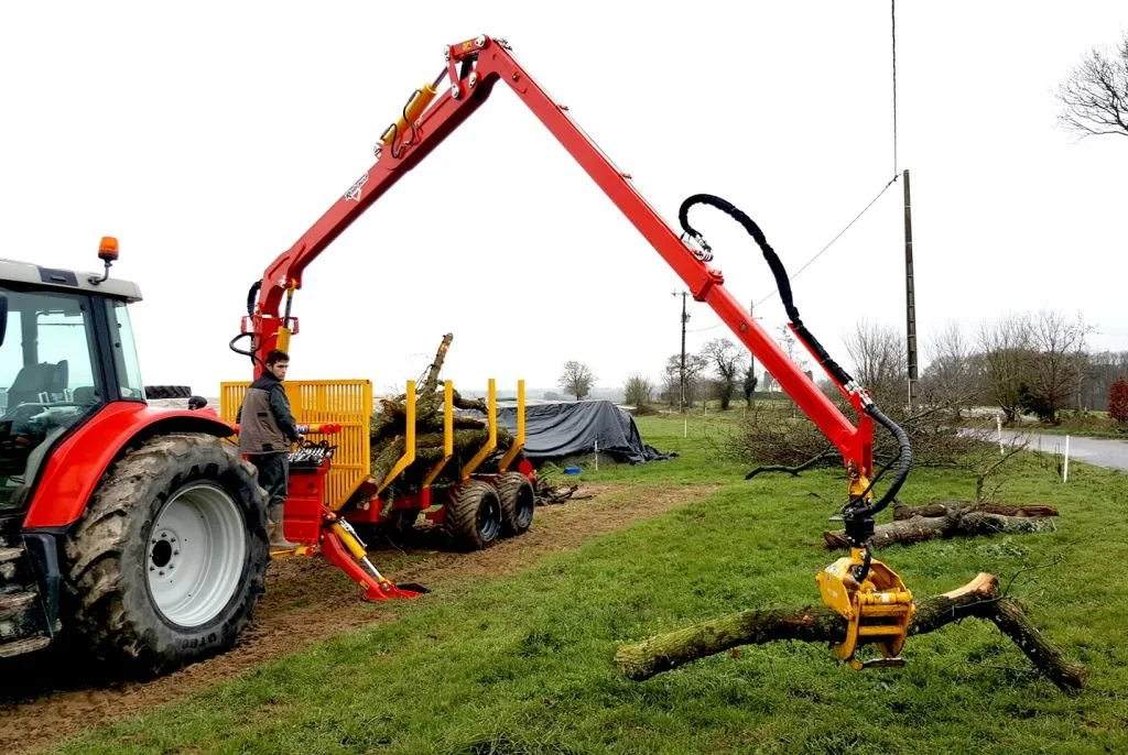 For better and safer loading and storing of the logs in the trailer, there is a protective grid of thick steel and the walkway allows the crane’s user to oversee the loading safely. (Forestry crane in option.)