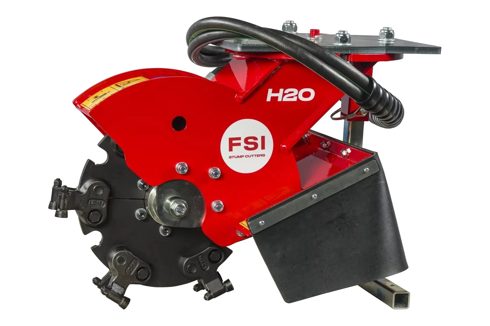The Hydraulic stump grinder attachments in FSI’s H series are ideal for work in hard-to-reach areas like slopes, riverbanks or behind fences and stone walls.