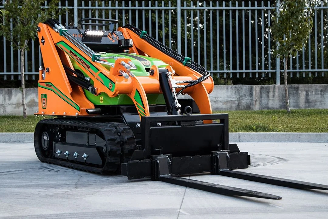 The quick coupling/decoupling front plate system makes changing attachments extremely fast and efficient. Operated entirely via remote control, with no tools required.