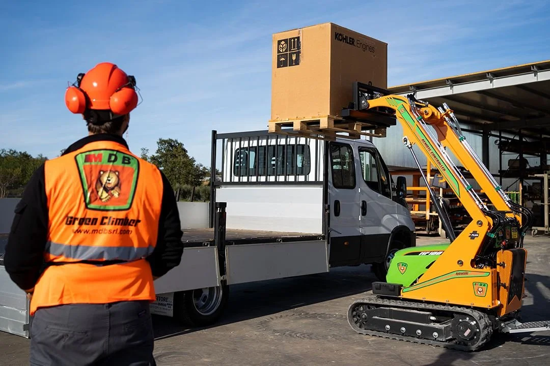 The MP 100 PLUS is primarily used with a mini-bucket for moving earth and materials, but with the quick-coupling plate, any attachment can be rapidly attached for the job at hand. The low centre of gravity and high-profile tracks achieve unrivalled stability on uneven, steep terrain.