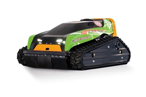 The F23 is the first Green Climber of its kind. Powered by a Kawasaki gasoline engine, it can tackle dense grasses and brush while traversing up to 60-degree slopes. The dual delta blade undercarriage mower can be remotely adjusted up to five inches in height to prevent scalping turf.