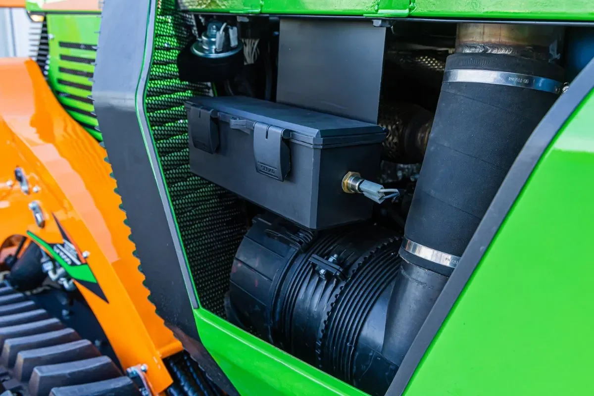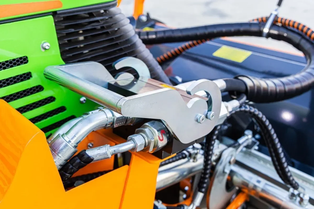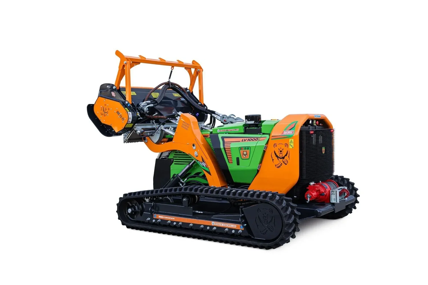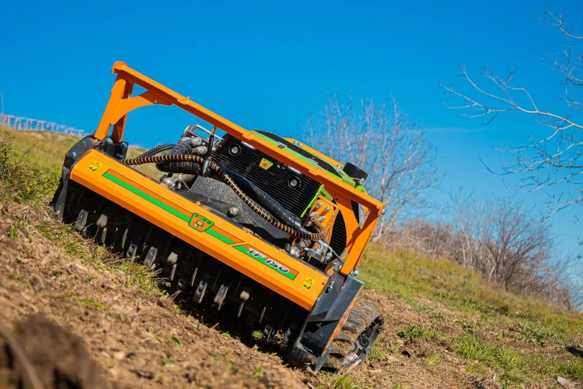 - Quick couplers allow easy switching between forestry mulchers, grass mowers, buckets and forks, all operated and locked/unlocked via remote remote control, ensuring maximum safety during operations.