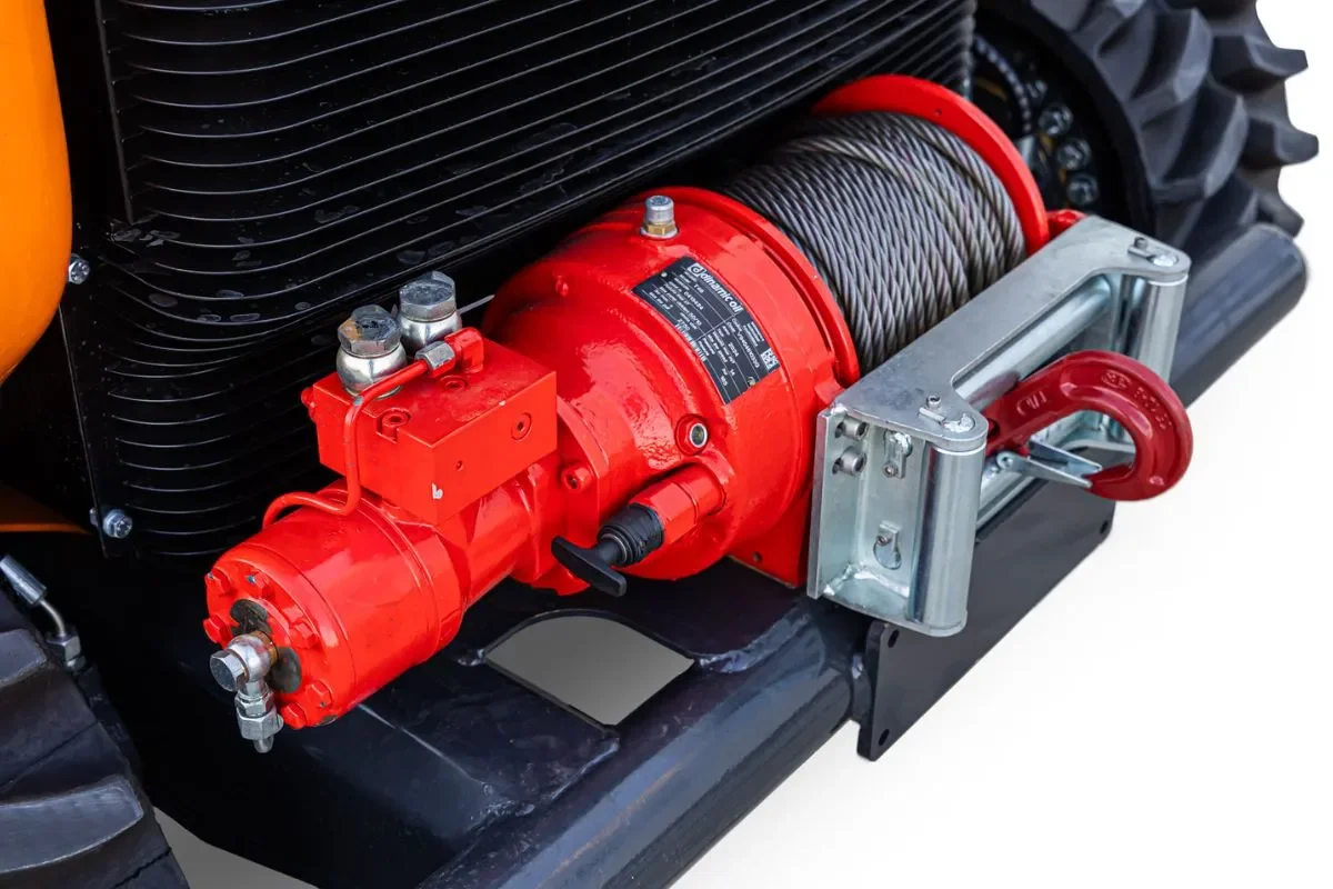 - To cope with the most extreme conditions, the Green Climber LV 1000 can be equipped with a high-performance hydraulic winch, available as an option. Thanks to the power of the hydraulic system, this tool is capable of generating exceptional tractive force, offering crucial support on particularly steep, muddy or skid-prone terrain. It is the ideal solution for safe recovery, anchoring or assisted advance operations. Robust, reliable and seamlessly integrated into the machine system, it significantly expands the operational versatility of LV 1000.