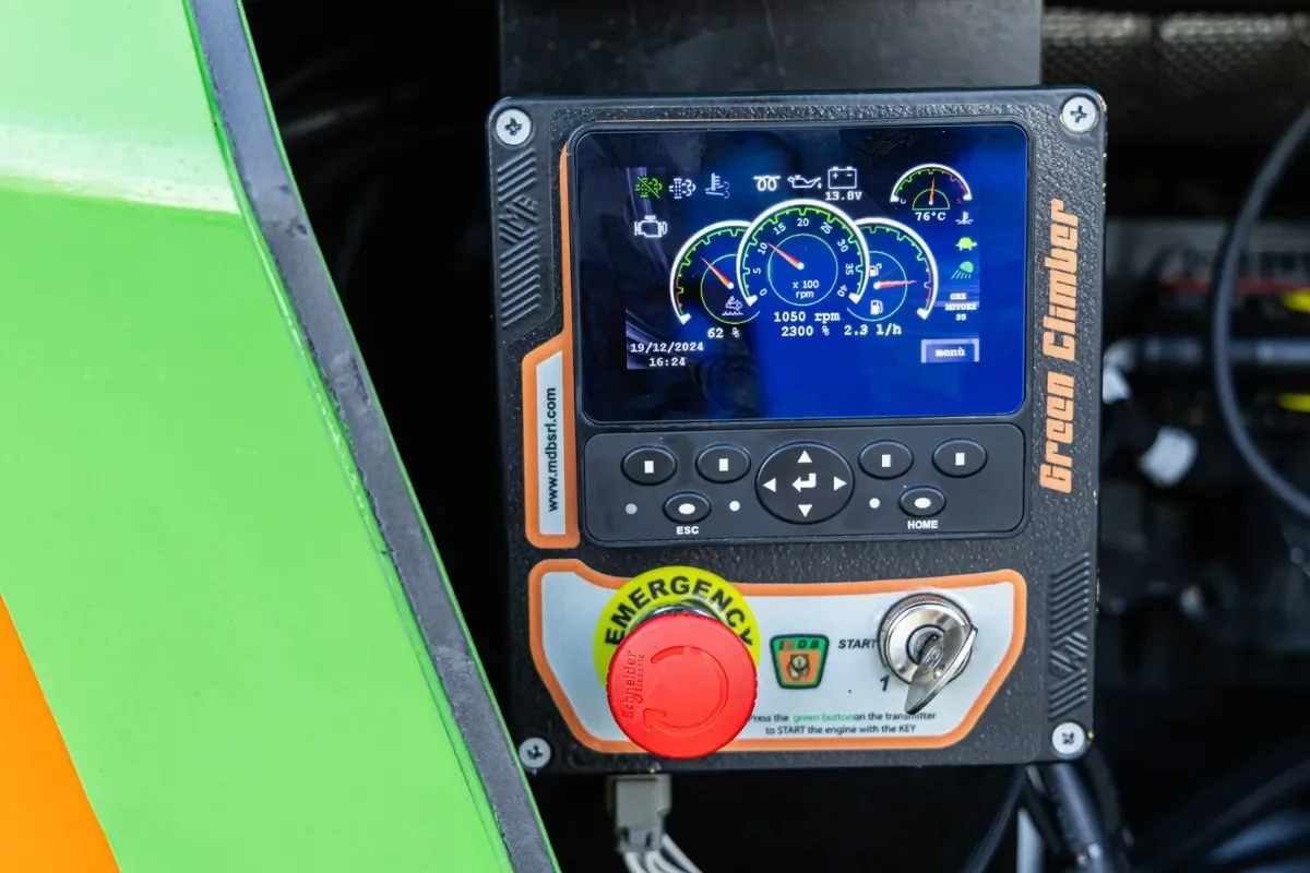 - An advanced electronic control unit manages the hydraulics, allowing customizable driving modes: dynamic for more responsiveness or neutral for gentler, more precise driving. This allows the operator to adapt the machine to the specific needs of the terrain and work, putting safety first. In addition, electronic management optimizes power delivery, ensuring constant torque even at low engine speeds, for smooth and controlled performance in any operating situation.