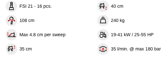 - Oil flow – Max 35 l/min.