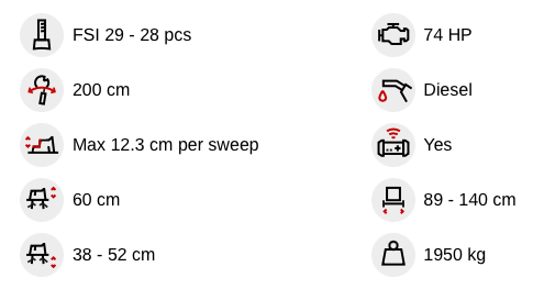 - Double hydraulic cylinder for the sweep function